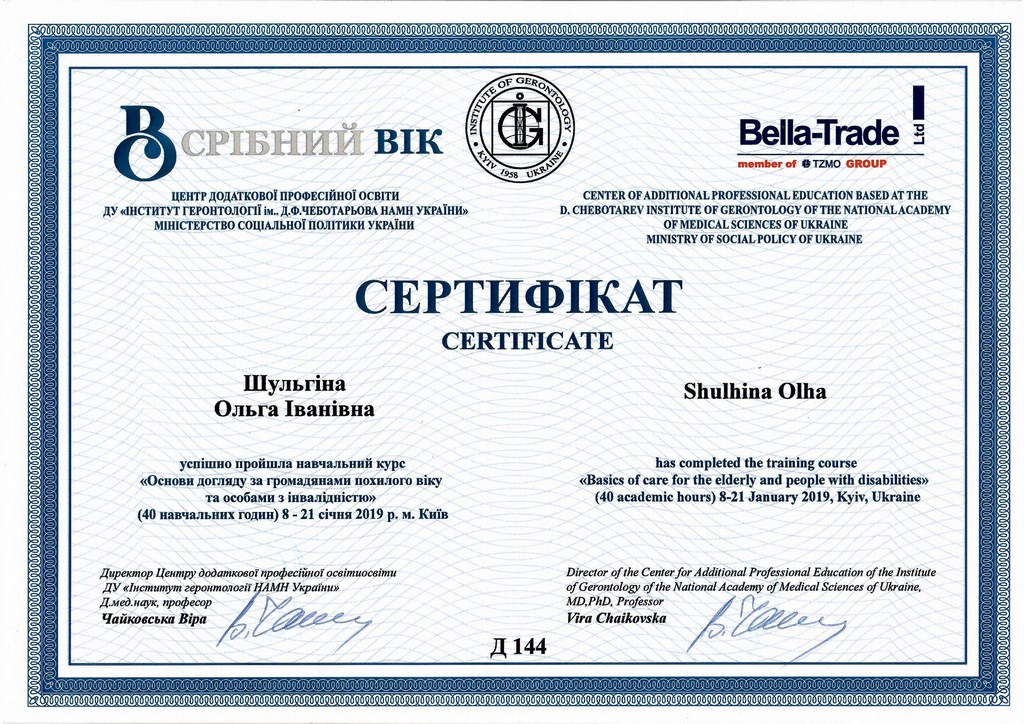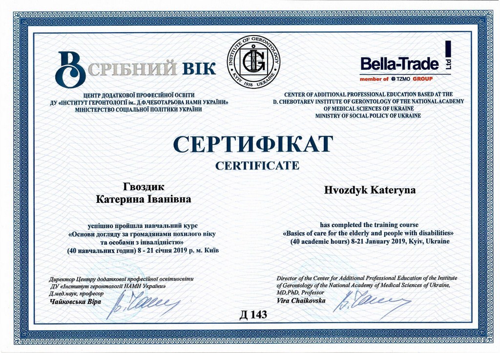 Наш подход основан на глубоком осознании важности миссии и ответственности за людей, находящихся под нашей опекой. Персонал регулярно проходит курсы повышения квалификации под эгидой специалистов Минздрава. Все сотрудники владеют современными методиками ухода за пожилыми людьми, что подтверждается соответствующими дипломами и сертификатами.