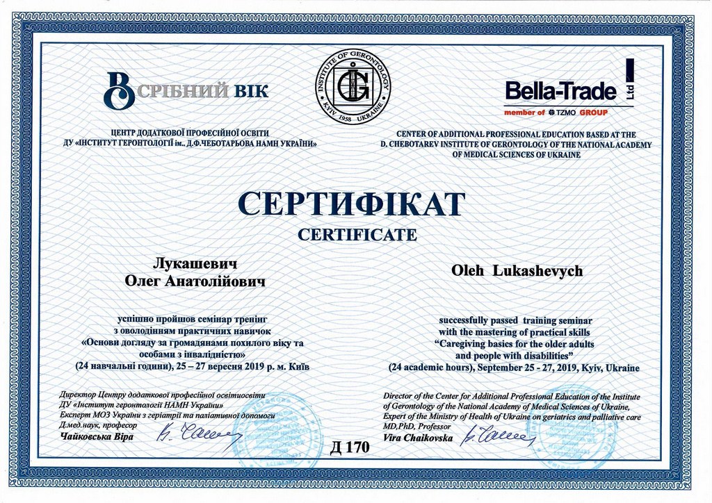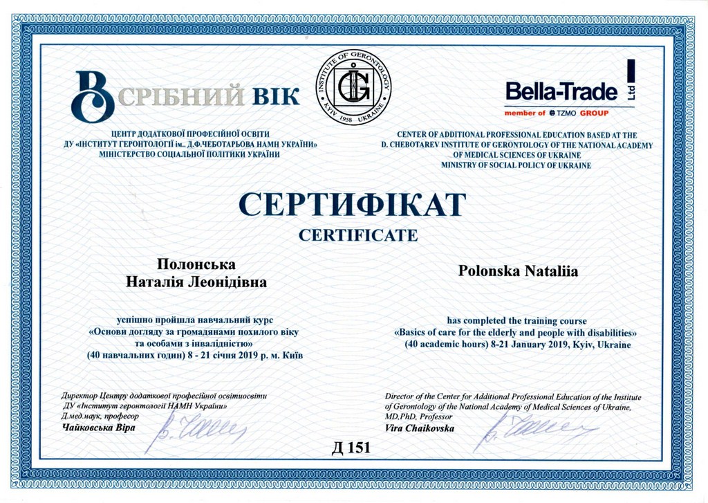 Дом престарелых "Осокорки" гордится сотрудничеством с Национальной Медицинской Академией последипломного образования им. П.Л. Шупика, благодаря которому наши подопечные могут получать бесплатные консультации от лучших специалистов в области медицины.