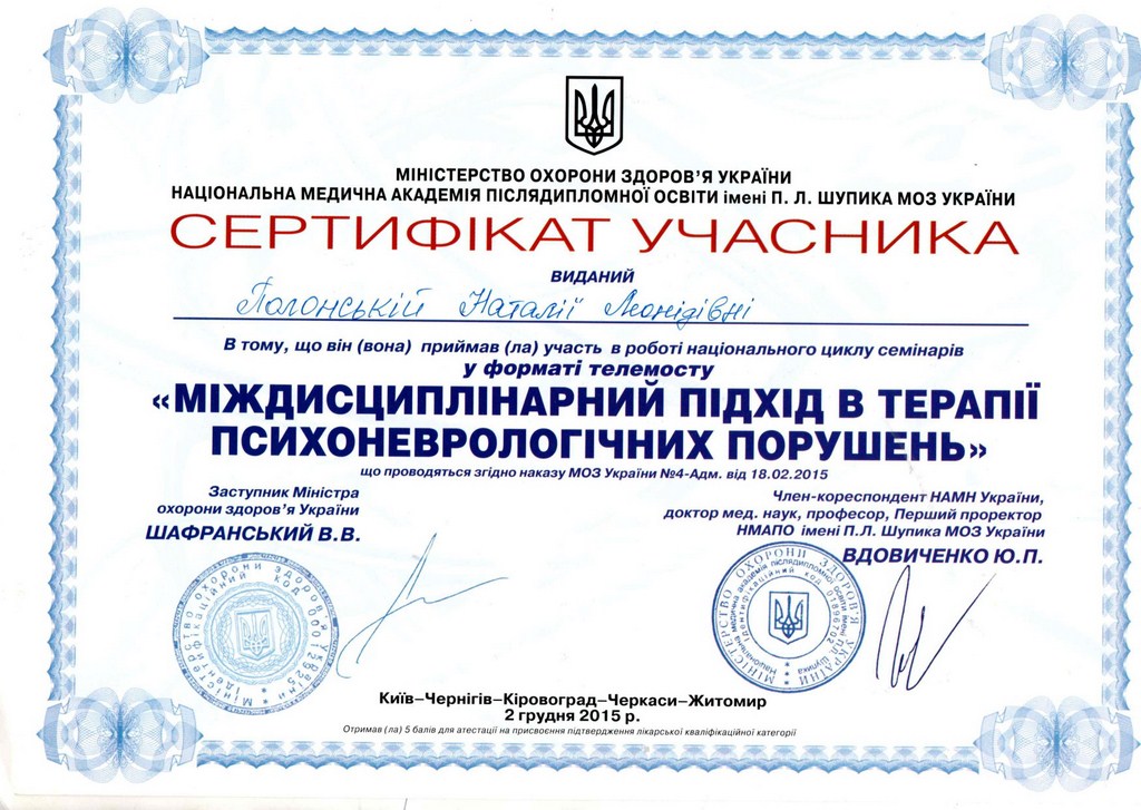 Сотрудничество с Национальной Медицинской Академией им. П.Л. Шупика